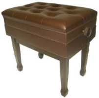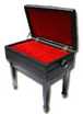 The Woodmaster Artist Benches come with a machine tufted vinyl or leather top and come with a small sheet music storage compartment under the seat. It is 15" Wide x 35" Long and adjusts from 18"-22" in height. The leather top is only available in the Ebony High Gloss Finish. See below for finish choices and additional details. Finish/Top - left to right: Ebony High Gloss, Ebony, Walnut, and Mahogany